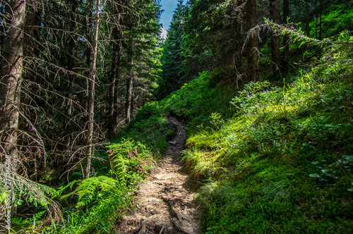 © onyx124, Obraz premium Leśny szlak wśród letnich drzew w górach