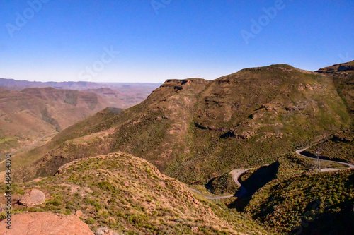 Obraz premium Lesotho王国をレンタカーで走った風景。壮大な山々と咲き乱れるコスモス、特徴的な農村部の家屋など見所が多い