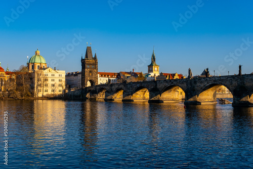 © dtatiana, Fototapeta premium Lesser Bridge Tower and a Charles Bridge in Prague ,Czech Republic .