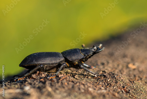 Obraz premium Lesser Stag Beetle - Dorcus parallelipipedus, beautiful small black beetle...