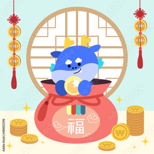 © yoonkyung, Obraz premium Let's be together with the blue dragon in 2024