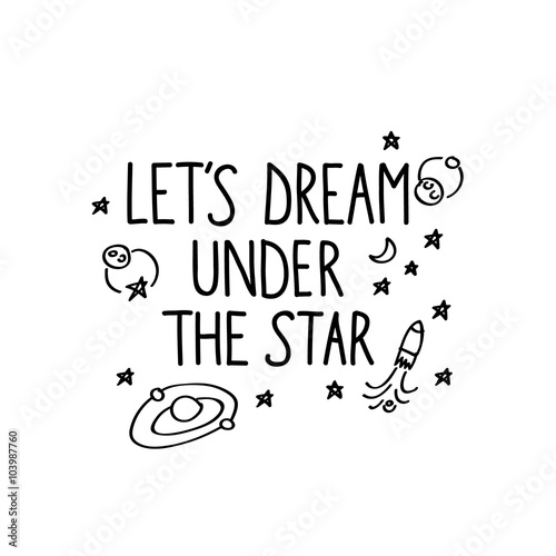 Fototapeta premium "Let's dream under the star" hand drawn lettering quote on white background....
