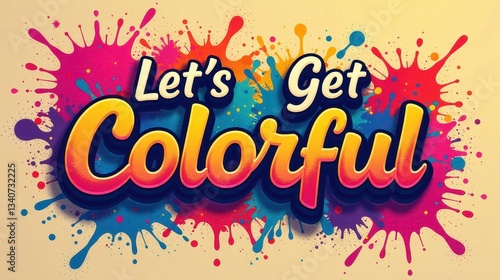 Fototapeta premium "Let’s Get Colorful" in dynamic graffiti-style lettering, on a textured Holi...