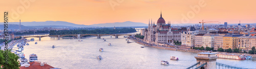 © rustamank, Fototapeta premium Letni krajobraz miasta, panorama, baner - widok z góry na historyczne centrum Budapesztu i Dunaj na Węgrzech