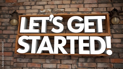 Obraz premium Lets Get Started Brick Wall Sign