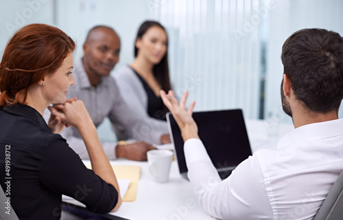 Fototapeta premium Lets talk numbers people. A group of coworkers having a meeting.