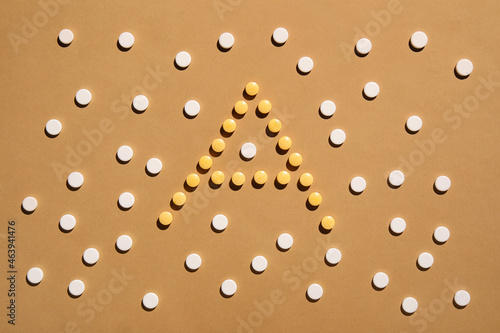 Fototapeta premium Letter A made of pills on color background