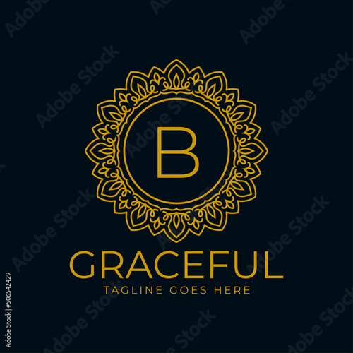 Fototapeta premium letter B flower graceful circle decoration monogram vector logo design