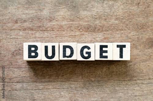 © bankrx, Fototapeta premium Letter block in word budget on wood background