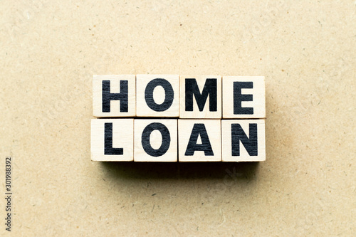 Obraz premium Letter block in word home loan on wood background