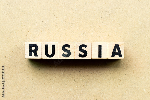 © bankrx, Obraz premium Letter block in word russia on wood background
