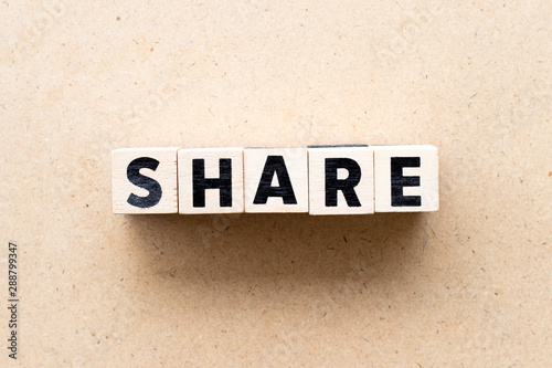 © bankrx, Fototapeta premium Letter block in word share on wood background