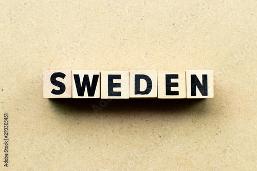 © bankrx, Obraz premium Letter block in word Sweden on wood background