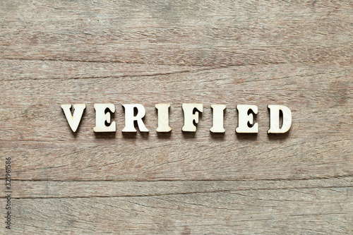 Fototapeta premium Letter block in word verified on wood background