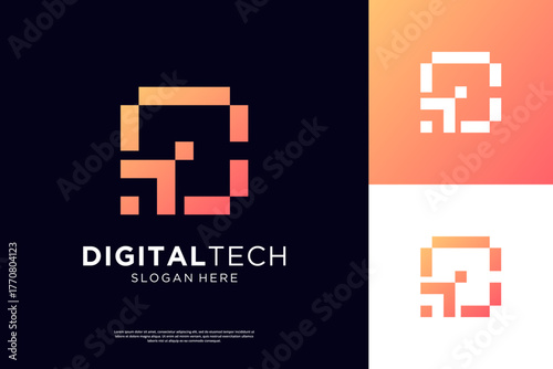 © suneo_99, Obraz premium Letter C digital logo design. Initial C abstract logo icon technology, dot, computer, data, internet.