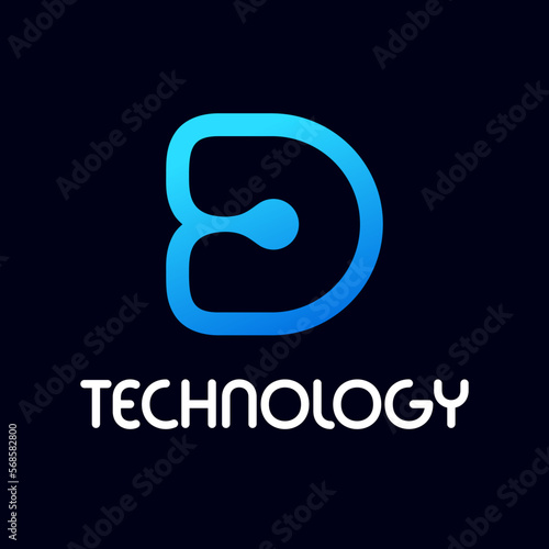 Fototapeta premium Letter D technology vector template. This alphabet is suitable for...