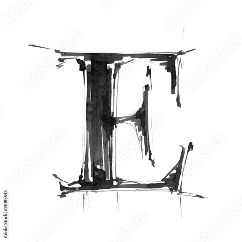 © Uladzimir, Naklejka premium letter E. Alphabet symbol - grunge hand draw paint
