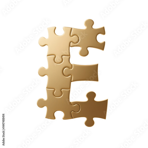 © MDTOUFICKAHAMAD, Obraz premium letter e formed from several interlocking golden puzzle pieces