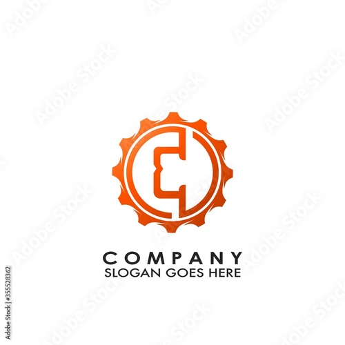 Obraz premium Letter E Logo. Modern Techno Gear Initial Logo Template Design