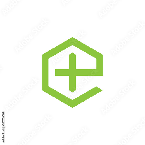 © Adnanjaya, Obraz premium letter e plus hexagonal logo vector