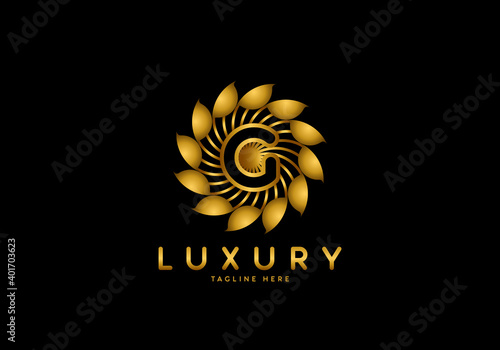 Fototapeta premium Letter G Golden Flower, Luxury logo template, circle ornament.