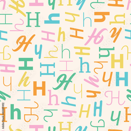 Fototapeta premium Letter H Alphabet seamless pattern playful decorative repeat backdrop background colorful decoration wrapping paper initial baby
