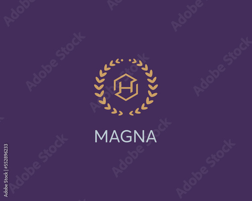 © iamguru, Fototapeta premium Letter H emblem. H monogram logo. Luxury alphabet round wreath frame icon sign. Vector illustration.