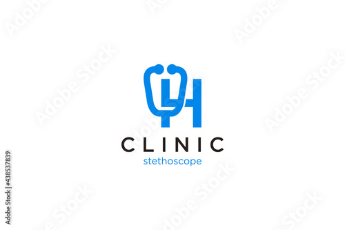 Obraz premium Letter H Logo with stethoscope for medical and pharmacy