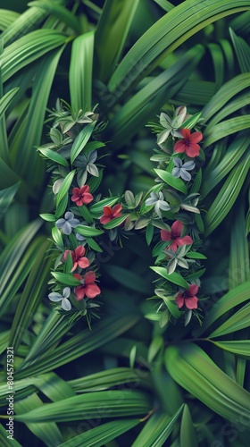 © BGSTUDIOX, Obraz premium Letter "H" wrapped in wild flowers and bamboo leaves.