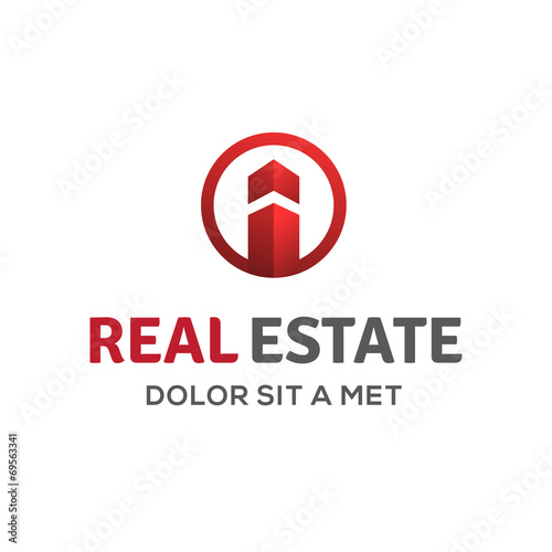 Fototapeta premium Letter I real estate sign logo icon with house and arrow.