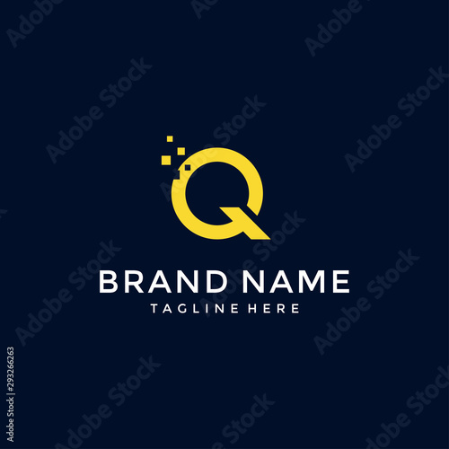 Fototapeta premium Letter/initial Q with digital symbol logo design