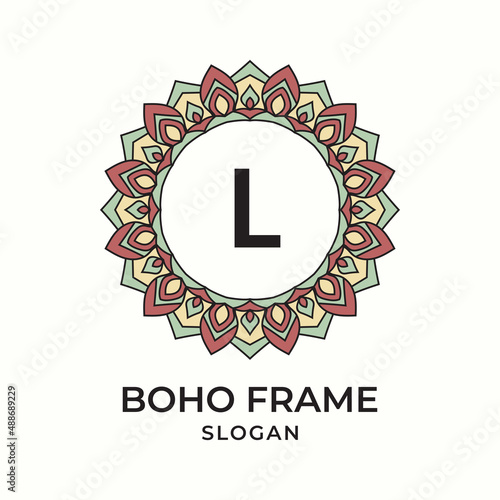 © badutsirkus, Naklejka premium letter L mandala boho frame vintage design element