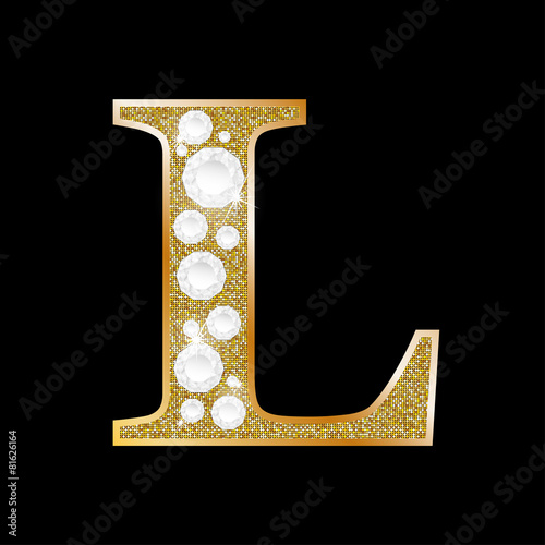 Fototapeta premium Letter L of gold and diamond