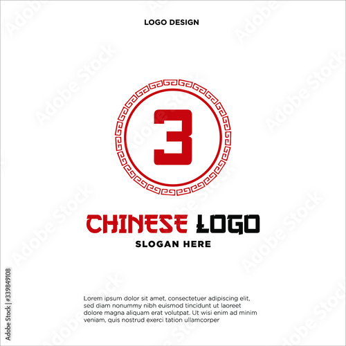 © Fazdesign.id, Fototapeta premium Letter 3 Logo Design with ancient circle border frame motif.