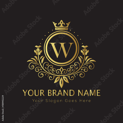 © ASRAF ALI, Fototapeta premium Letter Luxury brand logo design with a royal gold crown emblem and elegant typography