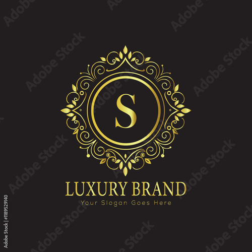 © ASRAF ALI, Fototapeta premium Letter Luxury brand logo design with a royal gold crown emblem and elegant typography