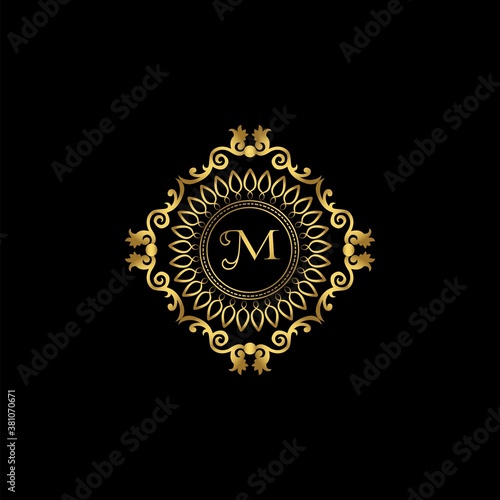 © SimpenArt, Fototapeta premium Letter M Luxury Ornament Logo. Monogram Crest Initial Letter Vector Design.
