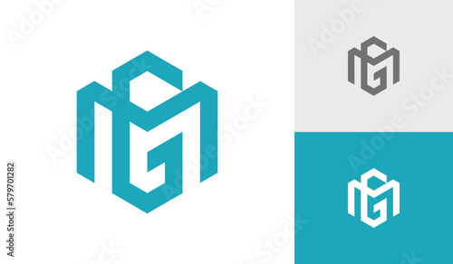 © Pirage Design, Fototapeta premium Letter MG or GM initial hexagon monogram logo design vector