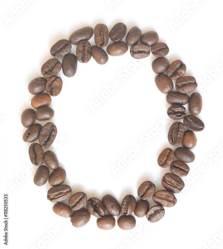 Obraz premium Letter O made of coffee beans under a daylight isolated on white background
