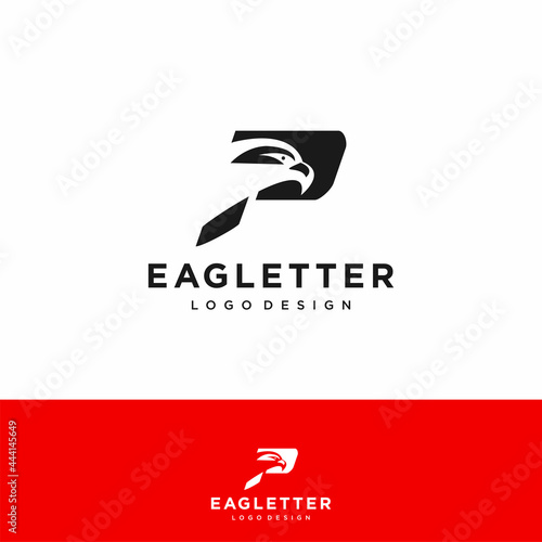 Fototapeta premium Letter P eagle head logo black vector color and red background art