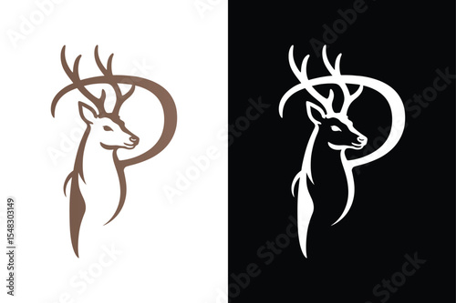 © MONI, Obraz premium Letter P letter design. P letter with Deer icon abstract vector logo icon circle logotype.