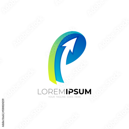 Fototapeta premium Letter P logo and arrow design combination, up logos