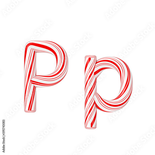© doomu, Fototapeta premium Letter P Mint Candy Cane Alphabet Collection Striped in Red Christmas Colour . 3d Rendering