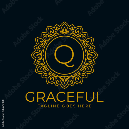 © badutsirkus, Fototapeta premium letter Q flower graceful circle decoration monogram vector logo design