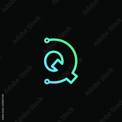 Obraz premium Letter Q logotype monoline Technology, digital, electronics, chip, connection...