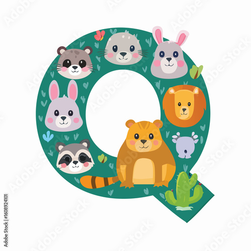 © cloud7days, Naklejka premium letter Q with the Animals theme vector illustration in a playful cartoon style.