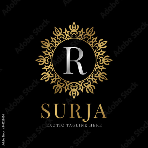 © badutsirkus, Fototapeta premium letter R vintage crest mandala vector logo design element