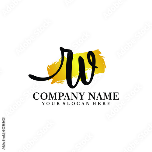 Obraz premium letter RV handwriting Black color logo, and elegant gold brush template
