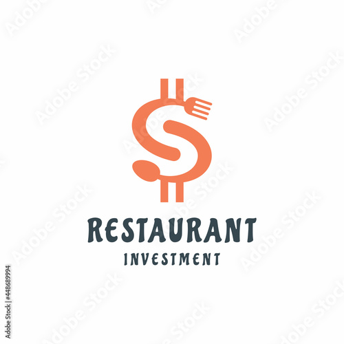 Obraz premium Letter S dollar with spoon and fork restaurant investment logo design illustration