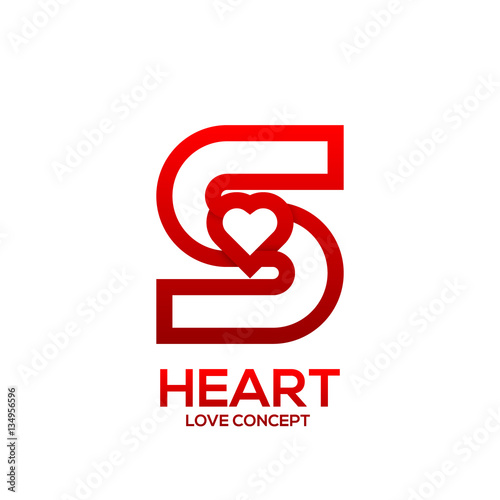 Fototapeta premium Letter S heart Red color logo,Valentine Day Love Concept Logotype